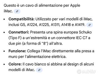 Apple Cavi alimentazione I-Mac