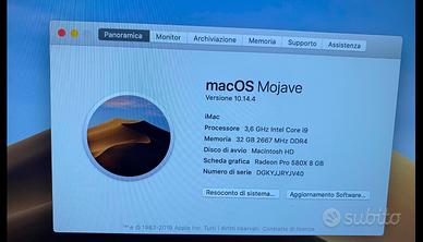 Apple iMac "Core i9" 3.6 27" (5K, 2019) 1 TB SSD , 16 GB RAM Funziona perfettamente