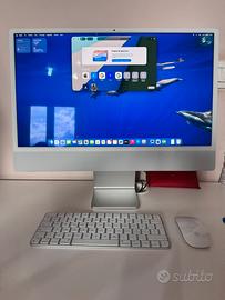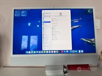 Apple 2021 Computer desktop all-in-one iMac con chip M1: CPU 8 core, GPU 7 core, display Retina da 24", 8GB di RAM, 256GB di archiviazione ssd color Azzurro Acquistato a Giugno 2023 ed ha soli 12 ore di utilizzo globale Solo ritiro