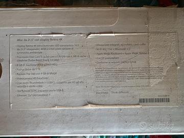 Vendo causa regalo del 2017 inutilizzato, scatola solo aperta e iMAC 21.5" ancora accendere per la prima volta e ancora DA ATTIVARE, condizioni perfette come nuovo, confezione aperta solo per vedere il prodotto e riposto subito nella scatola. Ho fatto le foto anche ai dettagli tecnici del prodotto a disposizione. Si accettano proposte d'acquisto ragionevoli. Grazie anticipatamente a tutti coloro che vedranno l'annuncio. Buona giornata.
