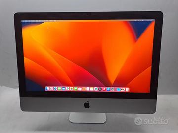Apple iMac 21,5" 4K 2017 A1418 – i5 – 8GB RAM – SSD 240GB macOS Ventura Perfettamente funzionante e pronto all’uso. Computer veloce e affidabile, ideale per casa, ufficio, studio, navigazione, streaming e grafica Specifiche tecniche: • Display Retina 4K da 21,5" ad alta risoluzione • Processore Intel Core i5 • Memoria RAM 8 GB • SSD da 240 GB • Scheda Wi-Fi e Bluetooth integrate • Webcam FaceTime HD • Sistema operativo macOS Ventura già installato e configurato Condizioni: • Usato, in ottime condizioni estetiche e funzionali • Nessun difetto hardware • Pulito, formattato e pronto all’utilizzo Contenuto della vendita: • Apple iMac 21,5" 4K • Cavo di alimentazione Esclusi Tastiere e Mause