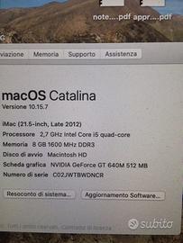 VENDO IL MIO APPLE IMAC 21,5 DEL 2012. PERFETTAMENTE FUNZIONANTE LO USO TUTTI I GIRNI. HO CAMBIATO IL DISCO FISSO IN APPLE E HO MESSO DISCO PIU' GRANDE DA 500GB. NO PERDITEMPO
