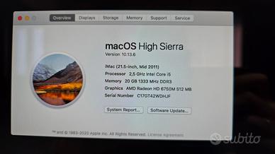 Apple iMac 21.5" fine 2011 - 20GB RAM