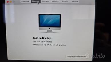 Apple iMac 21.5" – 20GB RAM – Perfetto per studio/ufficio – Pronto all’uso Vendo iMac 21,5" (fine 2011) in buone condizioni, perfettamente funzionante e appena formattato, pronto per essere utilizzato da subito. Caratteristiche principali: - Processore Intel i5 - 20 GB di RAM - Hard Disk 500 GB - Sistema operativo macOS High Sierra pulito e reinstallato - Schermo 21,5" Ideale per: - Navigazione internet - Pacchetto Office / studio - Film, streaming, YouTube - Seconda postazione casa/ufficio NON inclusi tastiera e mouse. Solo consegna a mano.