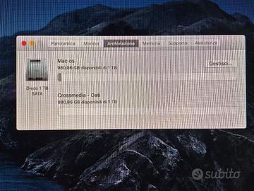 Vendo in perfetto stato, pari al nuovo, Imac aggiornato con ben 2 Hardisk Fusion veloci da 1TB l'uno, totale 2 TB(2000GB) di spazio utilizzabile! Non so anno preciso ma è nella penultima serie! Configurazione di fascia alta, processore Intel I5 2.9 GHz + Turbo Boos fino a 4.0 GHz. 8 GB Ram espandibile Schermo Retina 21.5 Pollici thunderbolt, usb 3, sd xc, Bluethooth WiFi ecc. Tastiera Wireless originale apple, tastierino con Hub e mouse. Tutto testato perfettamente funzionante, REGALO Stampante All in One a scelta! Resettato con Mac OSx Catalina, aggiornabile fino a l'ultimo sistema Mac OSx. Zona di Ritiro, Firenze nord, possibile ogni prova di funzionamento e test sul posto! No spedizione