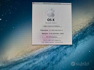 Apple iMac 21,5" Intel Core i5, 2013, RAM 8, 1 TB, tastiera, mouse e carica batteria, perfettamente funzionante, usato poco….solo ritiro non spedisco