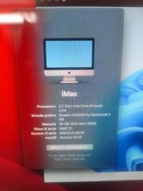 IMAC 21.5 2011 IN OTTIME CONDIZIONI, POTENZIATO CON SCHEDA VIDEO NVIDIA QUADRO K1000 2GB, SSD DA 500GB E RAM 20GB ATTUALE OSX VENTURA E DOPPIO SISTEMA OPERATIVO WIN 11 VENDO SOLO IMAC SENZA TASTIERA E MOUSE NON MI INTERESSANO SCAMBI CONTATTARE SOLO SE INTERESSATI E PRONTI A CONCLUDERE
