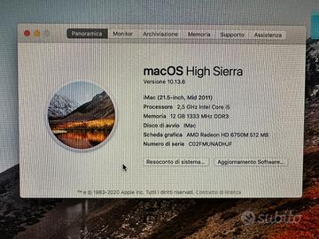 Vendo in ottime condizioni e con vari potenziamenti iMac (21.5-inch, Mid 2011), Processore 2,5 GHz Intel Core i5, Memoria 12 CB4333 MHz DDR3, doppio HD da 500 Gb SSD ed 1 Tb classico, Scheda grafica AMD Radeon HD 6750M 512 MB. Il mac funziona benissimo e lo vemdo solo per passaggio a portatile.