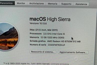 Imac 21.5 pollici mid 2011 Ram 12 GB HDD 512 GB Lettore Cd Sist. Operativo Sierra Tastiera e Magic Mouse Condizioni perfette, ma ovviamente non puó essere aggiornato a sistemi operativi recenti Nessun danno estetico Consegna a mano su Roma