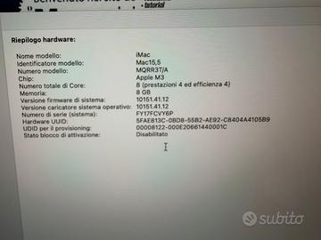 Apple iMac 24 M3 ssd 512GB come nuovo in garanzia