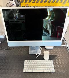 Apple iMac 24 2023 acquistato estate 2024 a 2100 euro (scontrino disponibile), Colore BLU. In garanzia fino a estate 2026. Versione con 512 GB SSD, processore M3, 8GB RAM, porta GIGABIT ETHERNET e 4 Thunderbolt Perfettamente funzionante, come nuovo usato pochissimo. Completo di scatola e tutti gli accessori originali inclusi. Tastiera con TouchID (lettore impronta).