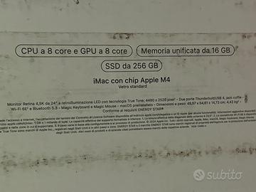 Vendo Apple iMac 24" con chip M4, prestazioni eccellenti e design super elegante.
