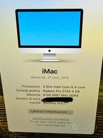 Vendo iMac 27 pollici 5k anno 2020, il computer è perfettamente funzionante ed è pari al nuovo privo di segni di usura. Non ho imballo oroginale. Processore i5 ram 8 GB spazio di archiviazione 1 TB. Per qualsiasi info non esistate a contattarmi