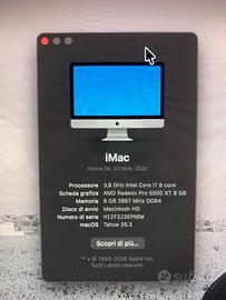 VENDO Apple iMac Retina 5K da 27 pollici acquistato gennaio 2021, in condizioni estetiche e funzionali perfette, ideale per utilizzo professionale in grafica, video editing, e applicazioni intensive.