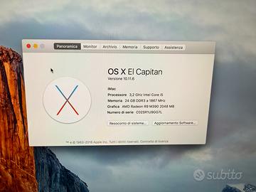 iMac 27” 5k del 2015, processore Intel i5 3,2GHz, Ram DDR3 24gb, SSD 1Tb, scheda grafica AMD R9 M390 2Gb. Magic Keyboard e Magic Mouse, presente scatola e imballo. Disponibilità per trattativa zona Padova e zona Portogruaro