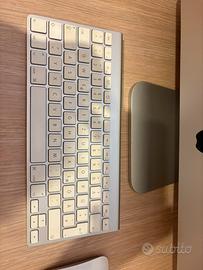 Il Mac è alimentato tramite cavo e la tastiera e il mouse sono Bluetooth, entrambi funzionanti con pile.