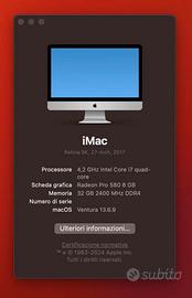 Vendo iMac 27” 5k anno 2017 Processore i7 4.2 GHz HD 2 Tb fusion drive Radeon Pro 580 con 8GB di VRAM