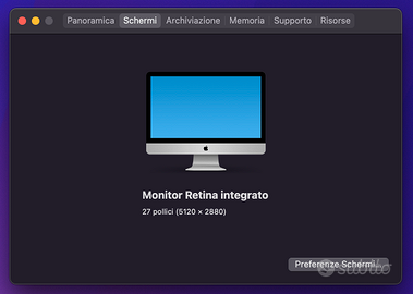 iMac con schermo Retina da 27 pollici con risoluzione massima di 5K