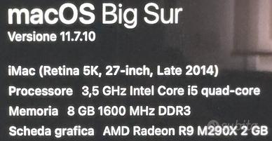 Vendo pc Apple iMac Retina 5k 27 pollici (late 2014) come nuovo.