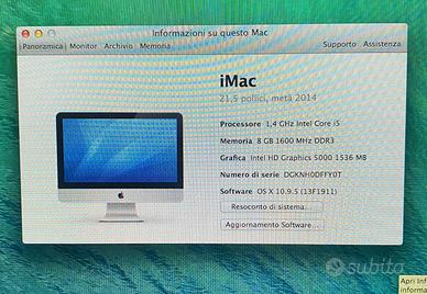 Apple iMac 21,5 pollici della metà 2014 usato poco e in ottime condizioni Resettato ma non aggiornato Preferibilmente consegna a mano