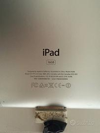 Apple iPad 16 GB Wifi + 3G modello A1396 anno 2011 funzionante in modo fluido. Presenta una leggera spaccatura sullo schermo ma solo superficialmente, mai riparato o aperto; batteria duratura. Completo di scatola e caricatore originali ma usurati. Prezzo poco trattabile.