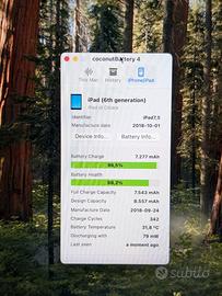 Vendo iPad sesta generazione (2018), con memoria da 128 GB, versione WIFi, in perfette condizioni estetiche e funzionali. La batteria ha solo 342 cicli di ricarica, Apple dichiara di aver progetto le batterie degli iPad per restare sopra l'80% della capacità massima fino a 1000 cicli!! È stato usato con cura (da mia moglie, non da un adolescente in preda agli ormoni tecnologici 😄) e sempre con custodia e pellicola protettiva. Zero cadute, zero danni, tutto perfettamente funzionante!