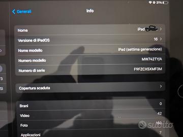 iPad settima generazione 10.2” 32 GB color argento. Ottime condizioni , solo impercettibili segni dovuti all'uso. Batteria in ottimo stato e lunga durata di carica. Usato pochissimo e sempre protetto da cover e pellicola vetro (che volendo lascio!). Consegno nella sua scatola originale