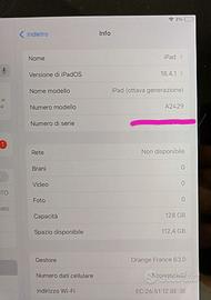 Apple iPad 8 th generation 128 GB wifi cellular Incluso cavo e caricatore Scolorimento sul retro ma perfettamente funzionante Vetro integro senza graffi batteria 90% circa