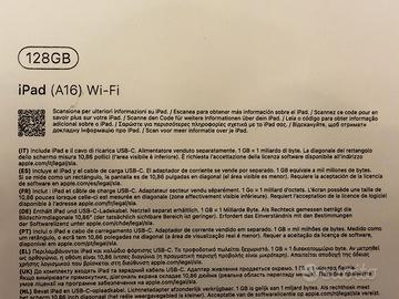 Causa doppio regalo vendo Apple iPad A16 Wi-Fi 128 gb grigio. Nuovo ancora da staccare strip della scatola. Con fattura del 13/04/2026 e garanzia.