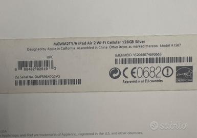 Vendo iPad Air 2 bianco, perfetto, nessun segno di usura o graffi. Schermo sempre protetto. Wi-Fi + Cellular. Capienza 128 GB. Completo della sua scatola e accessori originali