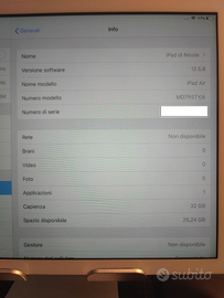 Cedo Apple iPad Air Modello 32 gb wifi + cellular. Tablet tenuto maniacalmente in perfette condizioni, senza alcun graffio e senza alcun difetto su scocca o sul vetro. Batteria in ottimo stato. Dura diversi giorni con uso misto standby e utilizzo, senza bisogno di ricarica. Presente il cavo lightning originale, scatola Apple e tutti gli imballi. Regalo custodia protettiva con supporto verticale e tastiera bluetooth ultra sottile.