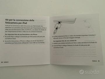 iPad camera connection kit: 30-pin / sd card 30-pin / usb Box originale. Mai usato.