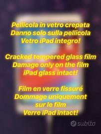 Il danno è ESCLUSIVAMENTE sulla pellicola in vetro, NON sul vetro originale dell’iPad, che è integro e perfettamente funzionante. Contattatemi senza problemi in caso di dubbi.