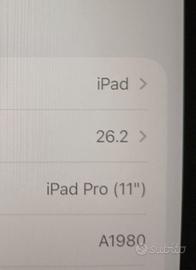 Apple iPad pro 11 2018 256 GB wifi Vendo per passaggio ad altro iPad Perfettamente funzionante senza graffi da segnalare solo due segni dove si aggancia la penna Incluso di un cavo un caricatore e una cover in discrete condizioni
