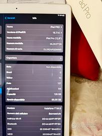 Apple iPad Pro 12.9" (6/2016) 128 GB - WiFi -4G Modello Nr. ML2K2TY/A Eccellenti condizioni, perfettamente funzionante, privo di graffi o scalfitture. Batteria originale al 72 %. Colore oro. Fornisco confezione originale , scontrino e cover di protezione compatibile. Si astengano incantatori di serpenti e affaristi. Cordialità Beppe.