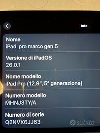 Un Apple IPad Pro 256Gb 5gen WiFi, mantenuto in perfette condizioni,grigio siderale con alimentatore e cavo usbC,non un graffio,nessuna ammaccatura,funziona tutto perfettamente.
