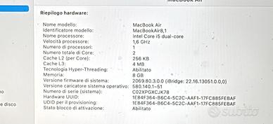 Vendo Apple Mac Book air 13” colore silver in ottimo stato. Caratteristiche come da schermate allegate. Preferibile consegna a mano zona Catania.