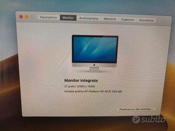 Vendo per passaggio a portatile. Schermo 27 pollici. Ampliate memorie e installato macOs Mojave 2018. Inverted da sostituire. Ritiro a mano, no spedizione.