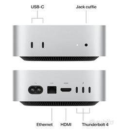 Apple Mac mini Computer desktop con chip M4, CPU 10-core e GPU 10-core): 16 GB di memoria unificata, 512 GB di archiviazione SSD, Gigabit Ethernet. Compatibile con iPhone/iPad