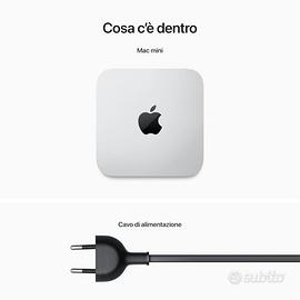 Condizioni ✔ Perfette, pari al nuovo ✔ Nessun graffio o segno di usura ✔ Usato pochissimo Aggiornato all’ultima versione del sistema operativo Apple, macOS Tahoe, per prestazioni ottimali, sicurezza e compatibilità con le più recenti applicazioni. Vendo Apple Mac mini 2023 con chip M2, un computer desktop compatto ma estremamente potente, ideale per lavoro, studio e utilizzo quotidiano. Design minimal ed elegante Apple, dimensioni ridotte ma prestazioni elevate grazie al chip M2 di ultima generazione. Prestazioni e Hardware ✔ Chip Apple M2 (CPU 8-core + GPU fino a 10-core) ✔ 8GB di RAM unificata per massima fluidità ✔ SSD da 256GB veloce e affidabile ✔ Sistema operativo macOS aggiornabile Prestazioni eccellenti per multitasking, office, navigazione, editing foto/video e utilizzo professionale leggero. Connettività e Porte ✔ Gigabit Ethernet integrata ✔ 2 porte Thunderbolt / USB 4 ✔ 2 porte USB-A ✔ HDMI ✔ Jack cuffie 3,5 mm ✔ Wi-Fi 6 e Bluetooth 5.0 per connessioni rapide e stabili Compatibilità e Ecosistema ✔ Perfettamente compatibile con iPhone e iPad (AirDrop, Handoff, Continuity) ✔ Integrazione completa con ecosistema Apple Caratteristiche principali ✔ Design compatto e silenzioso ✔ Consumi ridotti ed elevata efficienza energetica ✔ Avvio immediato e sistema super fluido ✔ Ideale per scrivania minimal o setup professionali Contenuto confezione ✔ Scatola originale ✔ Cavo di alimentazione Conclusione Mac mini M2 è una soluzione potente e compatta, perfetta per chi cerca prestazioni elevate in uno spazio ridotto, con tutta l’affidabilità Apple. 🧾 Stato prodotto Lo stato dell’oggetto è sempre indicato chiaramente nell’annuncio (Nuovo / Usato / Ricondizionato). • Nuovo: confezione aperta esclusivamente per verifica contenuto e integrità, mai utilizzato • Usato/Ricondizionato: prodotto testato, verificato e perfettamente funzionante al momento della spedizione Il prodotto spedito corrisponde esattamente alla condizione indicata nell’inserzione.