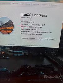 Mac mini con processore i5, 8gb ddr3, hard disck stato solido da 120gb. Tutto perfettamente funzionante compreso di trackpad e tasteira. Al trackpad manca un oiedino ma non preclude il normale funzionamento. Segni di usura come da foto