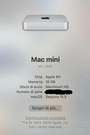 Bellissimo Mac mini con processore Apple Silicon M1 Il computer è stato configurato con 16Gigabyte di Ram e 1Terabyte di ssd Configurazione difficile da trovare Completo di scatola originale Prodotto italiano Preferibile scambio a mano