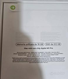 Apple Mac mini M2 Pro nuovo, mai utilizzato. Acquistato il 04/07/2025 da Mediaworld.