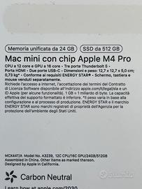 Vendo per acquisto portatile, come nuovo. M4 pro , 24gb, ssd da 512gb Accetto paypal con commissione a vostro carico. In garanzia fino a fine anno.