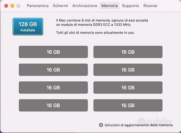 Mac Pro 5.1 Processori 2x3,46 ghz TOP Memoria Ram 128 gb ddr3-1333 ECC Hard disc 7200 rpm da 2tb Disco SSD M2 da 1tb (1400 mb/sec lettura/scrittura) scheda video AMD con 8 gb ram supporto 4K scheda USB-3 USB-C con 3+1 porte. Tastiera e mouse. Sequoia o Monterey e software a richiesta preinstallati. Ideale per Montaggi video e rendering. Scheda airport e bluetooth con supporto Airdrop Spedizione corriere espresso. € 1200,00