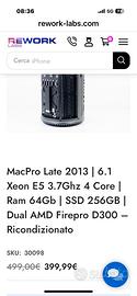 Apple Mac Pro 6.1 Cilindro Late 2013 - Intel XEON 4-Core 3.7GHz. Spazio di atchiviazione 500 GB