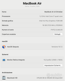 Vendo Macbook Air 13" del 2020 con processore Intel i7 1.2 GHz, colorazione Space Gray.