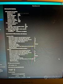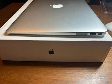 MacBook Air 13,3” pollici, modello 2015, acquistato da Mediaworld a febbraio 2017 con scontrino. Caratteristiche: Intel Core i5 1,6 GHz dual-core. 8 GB di RAM DDR3 1600 Mhz. Scheda grafica Intel Graphics 6000 1536 MB. Hard-disk da 500 GB. Sistema operativo: Monterey. Caricabatterie originale, prolunga originale 1 metro e in omaggio adattatore HDMI. Con in omaggio custodia antiurto rigida in cristallo trasparente. Conteggio cicli batteria: 340. Usato per la maggior parte da postazione fissa. La batteria viene indicata come necessitante assistenza, ma funziona perfettamente: dura 2/3 ore a pieno carico. Usato per studio prevalentemente a casa, sempre in custodia rigida, quindi senza ammaccature e graffi esterni. I tasti della tastiera sono perfetti. Sarà venduto nella sua scatola originale. Prezzo non trattabile. Contattare solo se realmente intenzionati. 180 euro