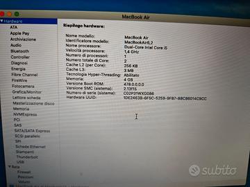 Funziona compreso di carica batteria, già formattato e pronto al uso, batteria con 21 cicli, 128 GB di memoria SSD, 4GB di RAM, sistema OSX Catalina, non disponibile scatola originale. Se leggete ancora l'annuncio ancora disponibile.