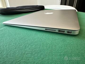 Modello A1466 pari al nuovo, utilizzato di rado come backup e con soli 254 cicli di carica batteria. Alimentatore da 45W e connettore integro. Il MacBook è originale APPLE con le seguente caratteristiche tecniche: Processore Intel I5 - 4 GB di RAM - SSD da 128 GB - Schermo HD LED 13,3" - 2 porte USB 3.0 - Slot per SDXC - Videocamera HD Facetime. Nessun Graffio o ammaccatura sulla scossa, mai caduto! Display immacolato, nessun segno, Pannello LCD integro al 100%. Grado ECCELLENTE !! Al prezzo, leggermente trattabile di 160€, aggiungo in regalo: > Borsa in neoprene di qualità, specifica per questo MacBook. > Adattatore Mini DisplayPort a HDMI > Adattatore Mini DisplayPort a VGA